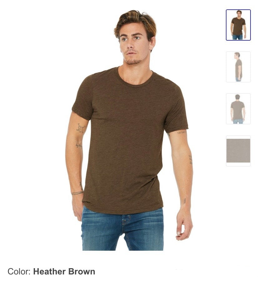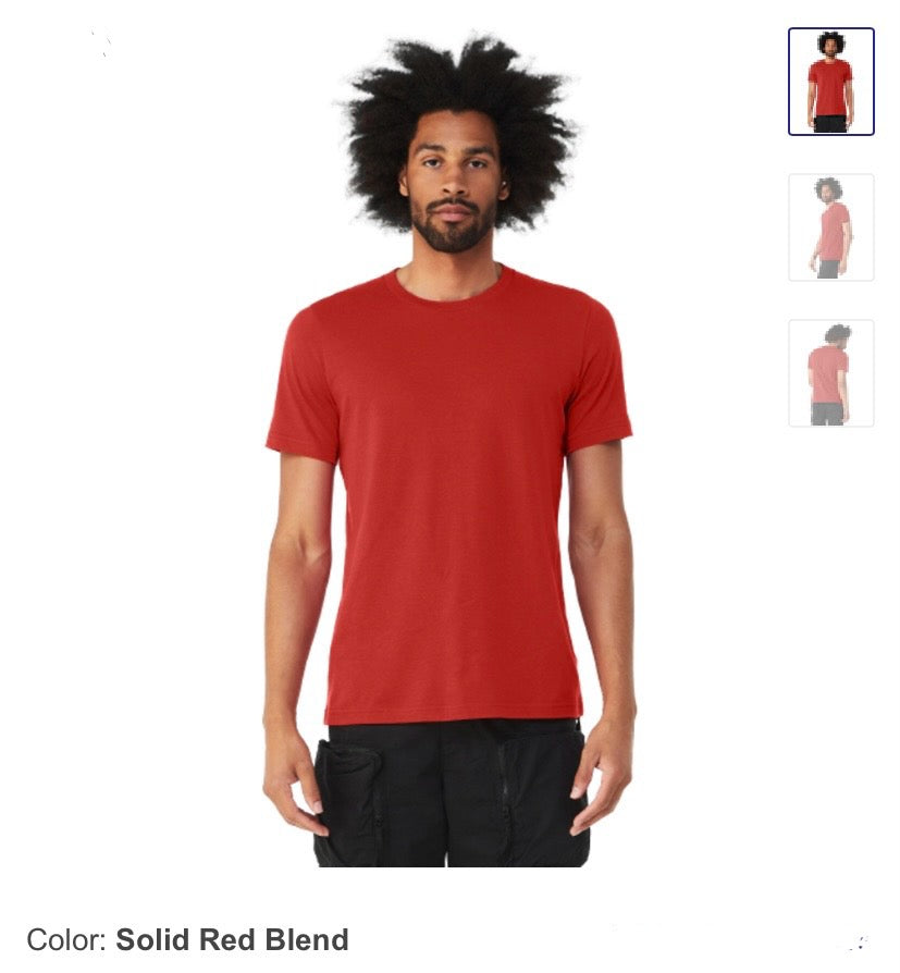 Tshirts are Bella Canvas Unisex blend of cotton and polyester.