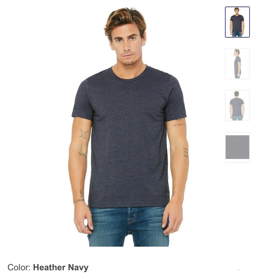 Tshirts are Bella Canvas Unisex blend of cotton and polyester.