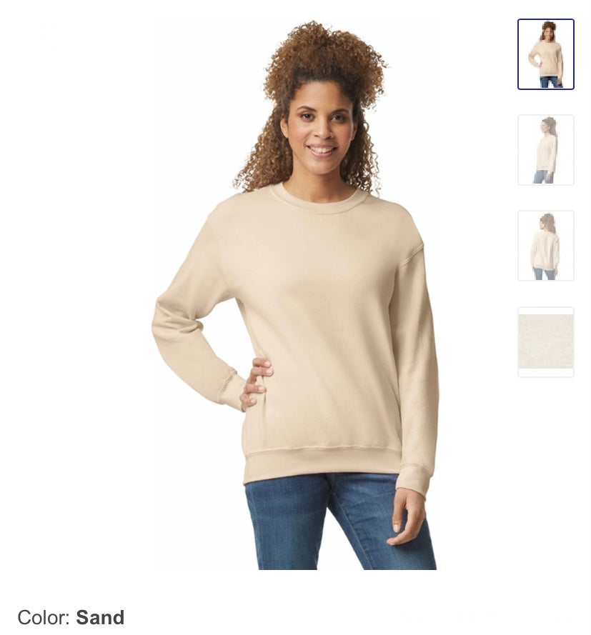 Crewnecks are Gildan Unisex which are 50/50 Blend of Polyester and Cotton.